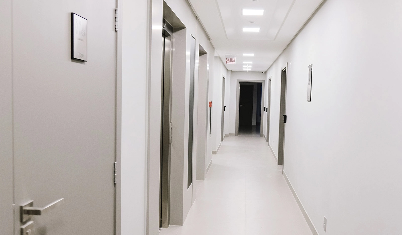 Recepção com controle de acesso e sistema de monitoramento por câmeras