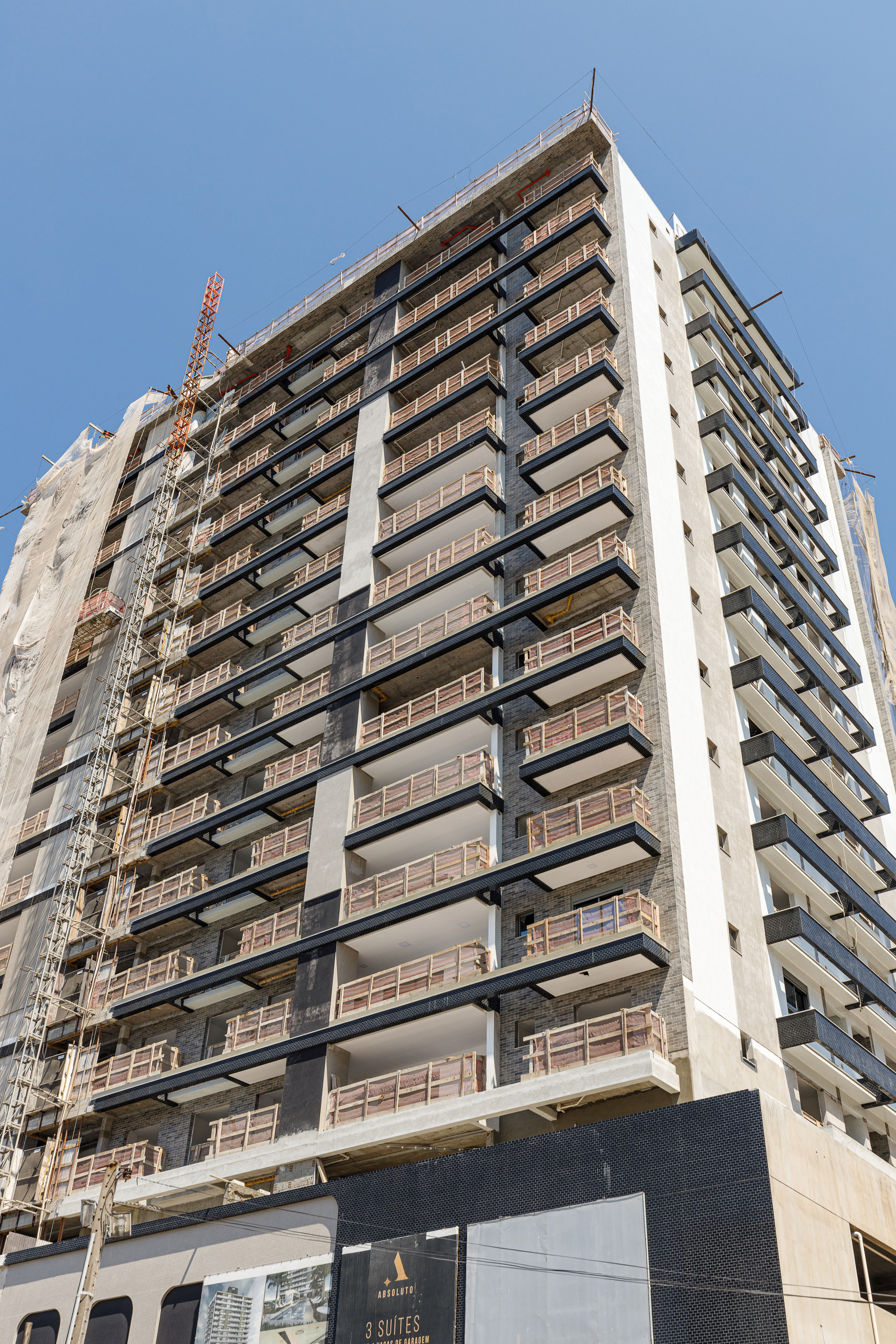 Com arquitetura moderna, o Absoluto conta com uma fachada 100% revestida com pastilhas, promovendo um acabamento impecável de alta durabilidade e baixa manutenção.