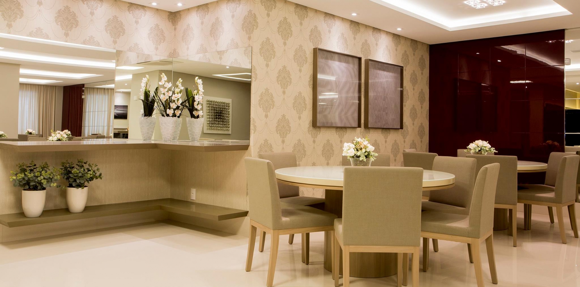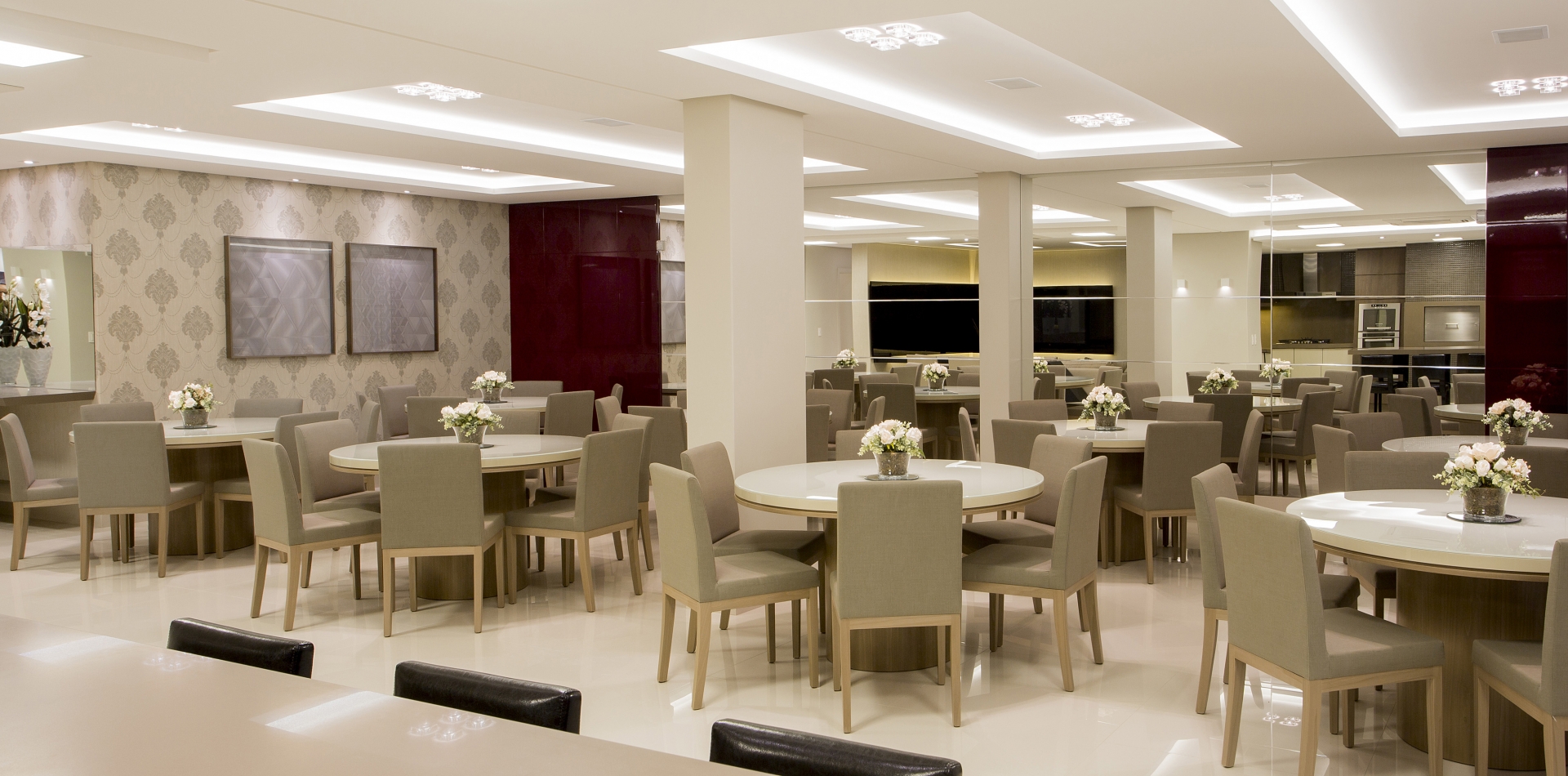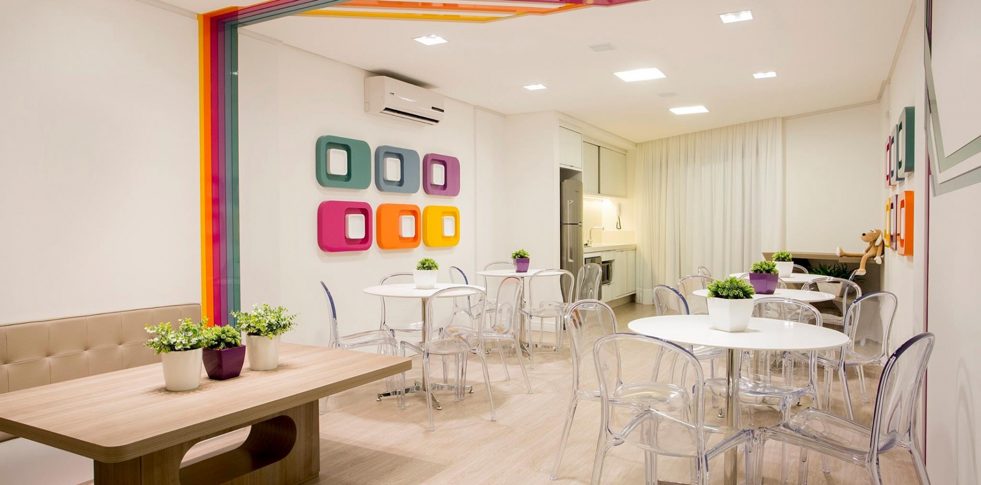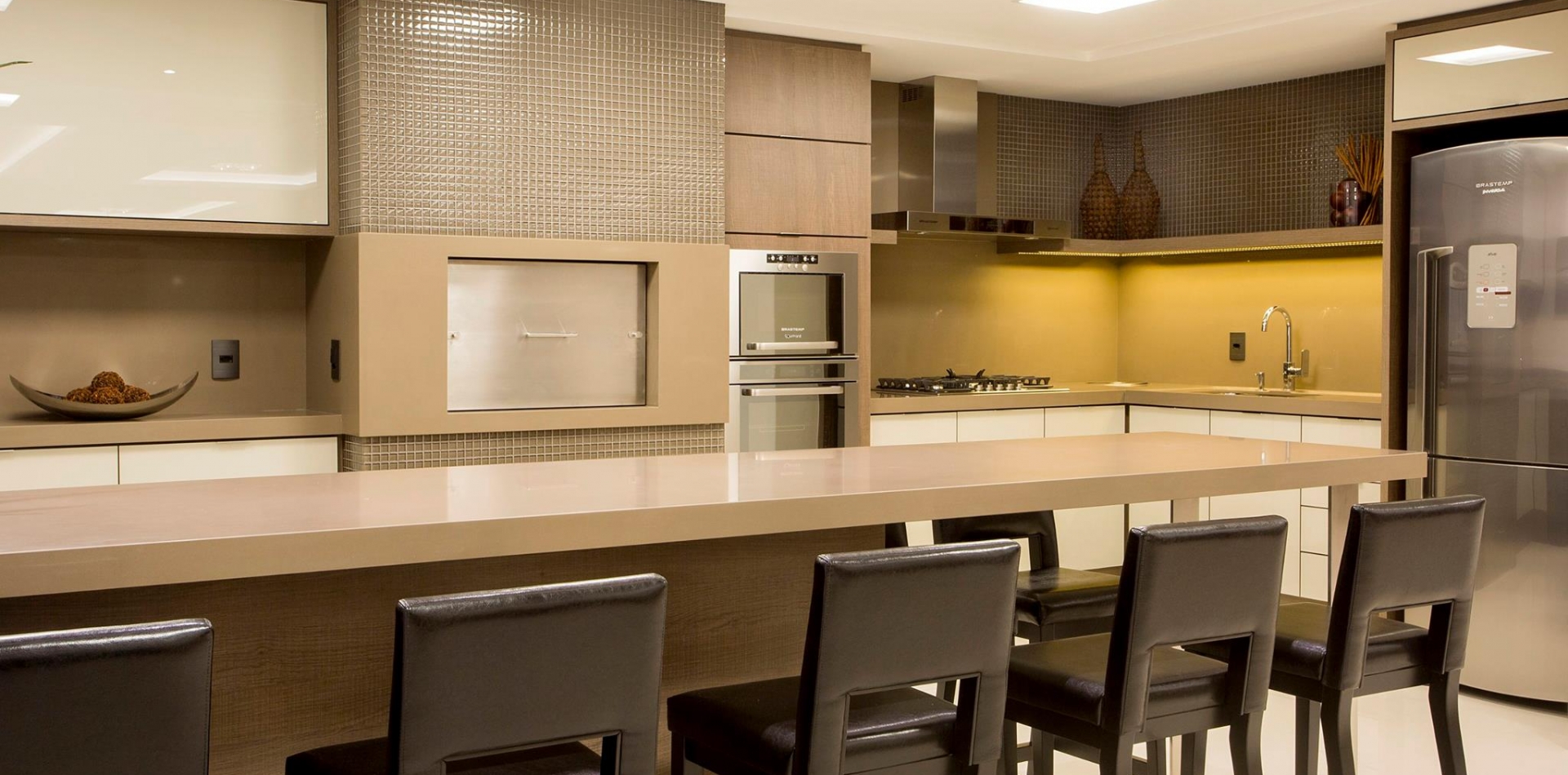 Áreas de lazer e convivência mobiliadas, equipadas e decoradas